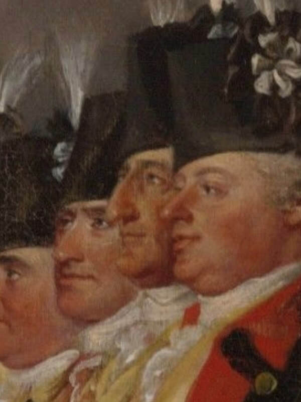 If he even needed a sitting, Muhlenberg would not have been a hard man for Trumbull to find. The retired general served in Congress and as vice president and de-facto governor of Pennsylvania during the earlier years of Trumbull’s project. In the Yorktown painting, Muhlenberg stands between Henry Knox and Edward Hand. All of them were in their thirties in 1781 and appear so under Trumbull's brush.