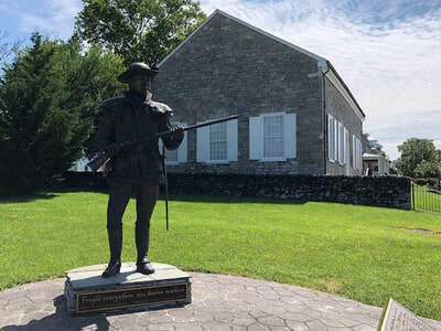 The old Presbyterian Church, with a statue of Daniel Morgan.